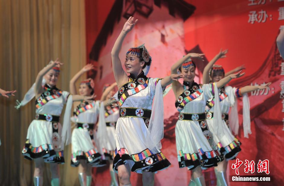 10月24日,重庆市社区老年健身舞大赛在该市沙坪坝区合展天池老年护养中心举办。来自重庆沙坪坝、九龙坡、南岸等共9支代表队的老人们穿着精美的服饰前来参赛。参赛选手平均年龄65岁,选手们分别展现《祖国您好》、《我的玫瑰卓玛拉》、《快乐跳吧》等健身舞蹈节目,为市民传递健康、积极、快乐的生活方式。据重庆市老干部事业发展协会会长顾斌介绍:“此次健身舞大赛,将进一步展现重庆社区多姿多彩的文化生活和社区建设成果,展现出老同志健康的活力和自信的魅力”。陈超 摄