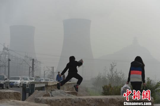 10月25日,北京石景山广宁村,热电厂外雾霾中的行人。廖攀 摄