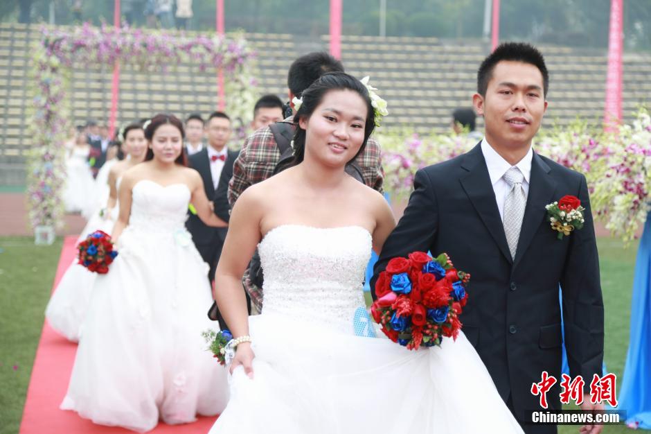 图为农民工新人走入幸福殿堂。 钟建 摄