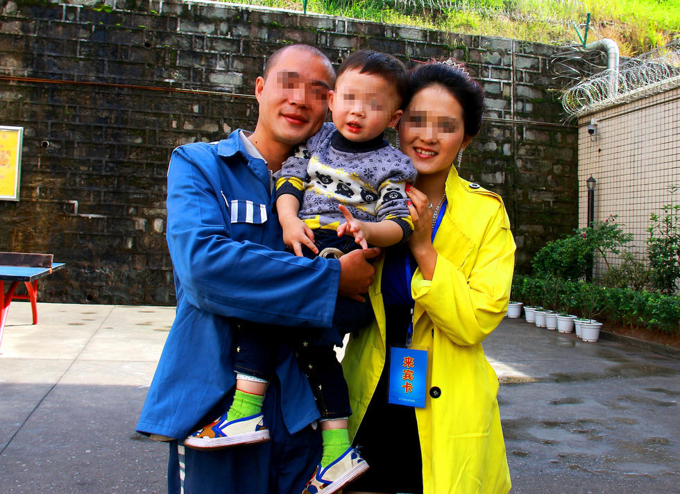 王智是四川广安市邻水县人,离婚后带着一岁的儿子在甘肃务工。在甘肃,遇见了女孩青青,两人一见钟情。爱情的到来,让王智感觉到了生活的压力与责任,不过他却选错了方法——为了挣钱,他铤而走险去贩毒,这一切青青却被蒙在谷里,直到王智被捕。2013年3月,因为涉嫌贩卖毒品罪,王智被法院判处有期徒刑7年6个月。图为一家三口在监狱合影。