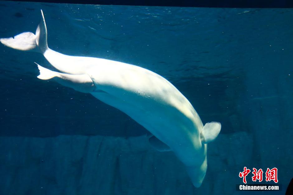 10月29日,长沙海底世界一只名叫“卓雅”的白鲸,成功产下一头小白鲸。白鲸妈妈产子过程被长沙海底世界记录下来。黄为 摄