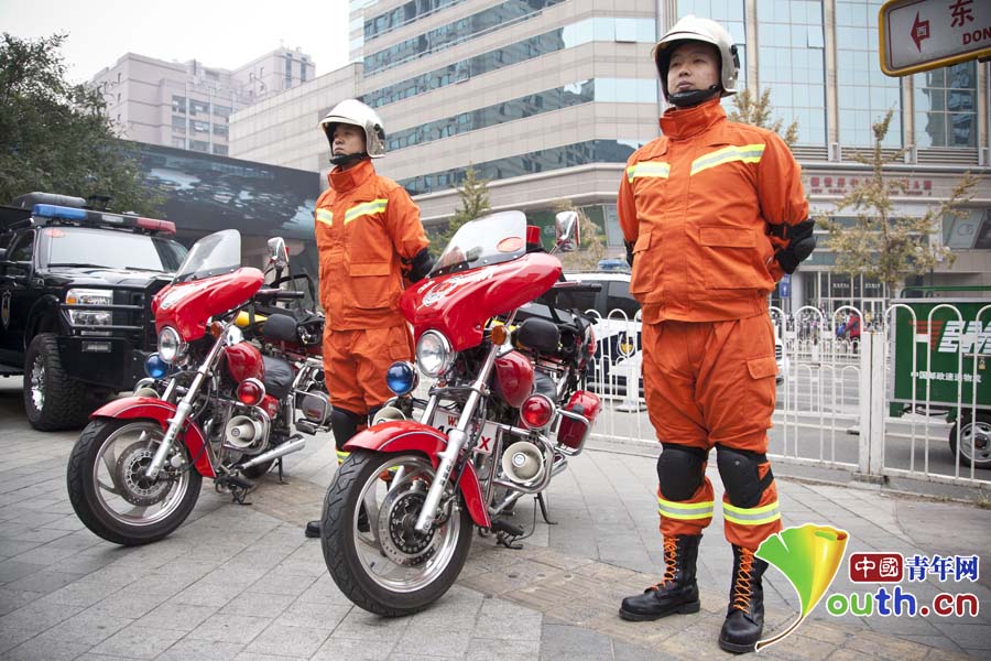 现场展示的消防摩托车。 中国青年网记者 李拓 摄