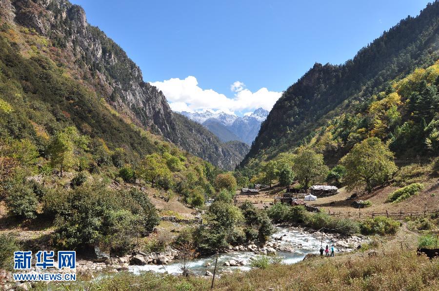 这是10月24日拍摄的雨崩村风景。云南德钦县雨崩村,梅里雪山海拔最高的村庄,一个生物多样性保存完好的美丽村庄。在这里,抬头就可以看到云雾缭绕的雪峰,近距离欣赏到原始森林、草甸花海、丰富奇异的动植物。村庄周围山峦环绕,进入雨崩村只有两条需要徒步5至8小时的人马驿道,村子里大部分生活物资只能靠人背马驮运进去。 2003年,三江并流地区被联合国教科文组织列入世界自然遗产名录,梅里雪山是三江并流地区的主要景观。这一区域旅游业的发展,改变了雨崩村。新华社记者潘洁摄