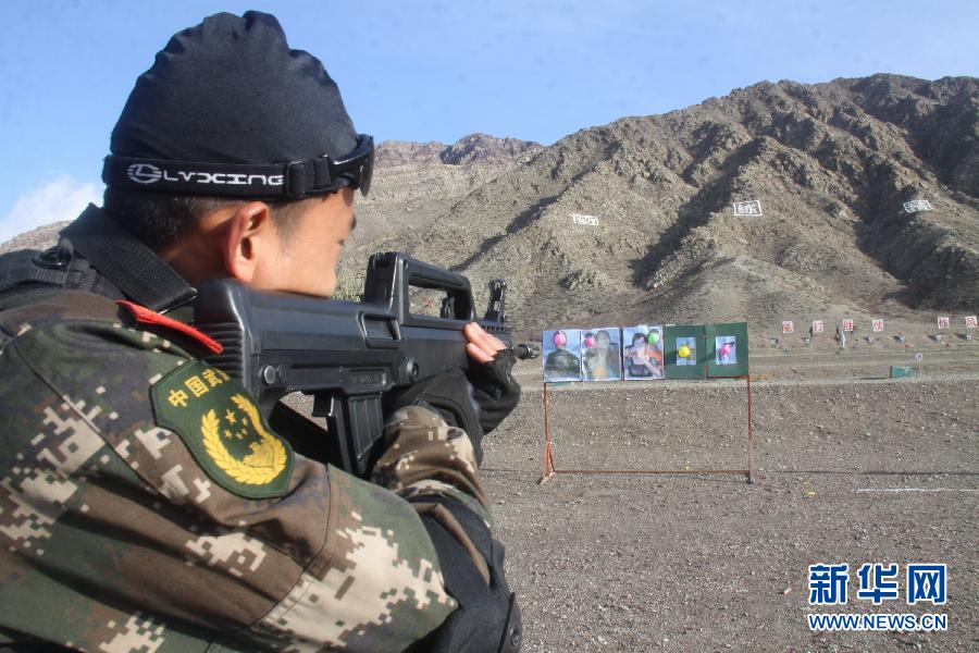 武警宁夏总队石嘴山市支队特战队员进行射击训练(10月31日摄)。 10月31日,武警宁夏总队石嘴山市支队在贺兰山下进行野外训练,从难从严从实战出发进行实兵实装训练,进一步提升部队遂行多样化任务能力。新华社发(周焕成 摄)