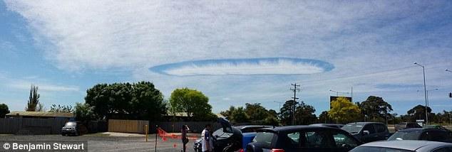 据英国《每日邮报》11月3日报道,澳大利亚旺萨吉,当地居民在天空中发现罕见的“雨幡洞”现象。卷积云或高积云内含有一些超冷的水滴,当飞机飞过云层,螺旋桨车叶或机翼扩张,令这些水滴迅速结冰变成冰晶体,然后向下堕离云层,便好像令云层穿了一个洞。