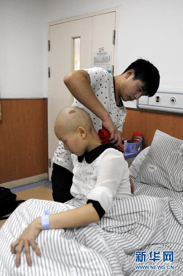 11月5日,于海宁在病房里帮范会香擦洗。新华社记者 李博 摄
