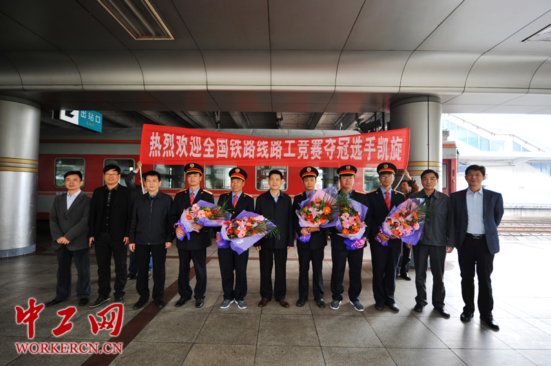 选手们凯旋归来。(左边第一人)为鹰潭工务段线路工徐玉强在铁路线路工第一名。