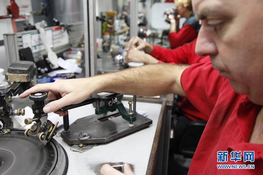 11月7日,在比利时安特卫普,技师们在加工钻石。 新华社记者王晓郡摄