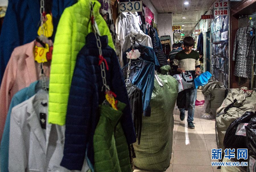 11月8日晚,杭州四季星座大厦一名网店工作人员在准备交寄发货的快件。 “双十一”网络购物高峰即将到来,浙江杭州网店密集的四季星座大厦内众多网店工作人员连夜备货发货。因毗邻杭州四季青服装批发市场,20层的四季星座大厦内有600多家商户,主营网络男装。新华社记者韩传号摄