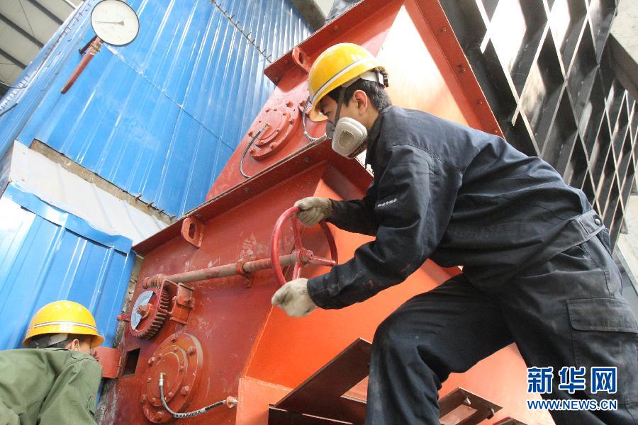 11月8日,在烟台华阳热电公司奇山供热站,司炉工调试锅炉。当日,山东省烟台市2014-2015采暖季正式拉开帷幕,全市供热企业锅炉全部点火启动,开始冬季供暖,确保百姓温暖过冬。新华社发(申吉忠 摄)