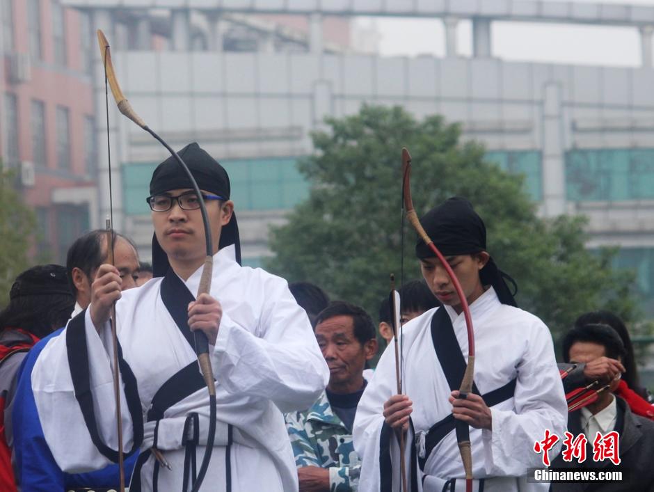 湖南高校举行乡射礼 学子着汉服重现千年传统