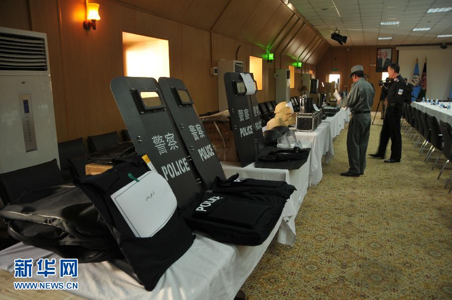 这是11月8日在阿富汗首都喀布尔拍摄的中方向阿方移交的部分警用设备。当日,中国援助阿富汗的一批警用设备正式移交阿方。中国驻阿富汗大使邓锡军、阿富汗内政部第一副部长萨朗吉出席移交仪式。中方此次移交的物资包括通讯设备、取证相机、警用头盔和盾牌、药(毒)品快速检测设备等,中方还向阿方提供设备操作培训等帮助。新华社记者陈杉摄