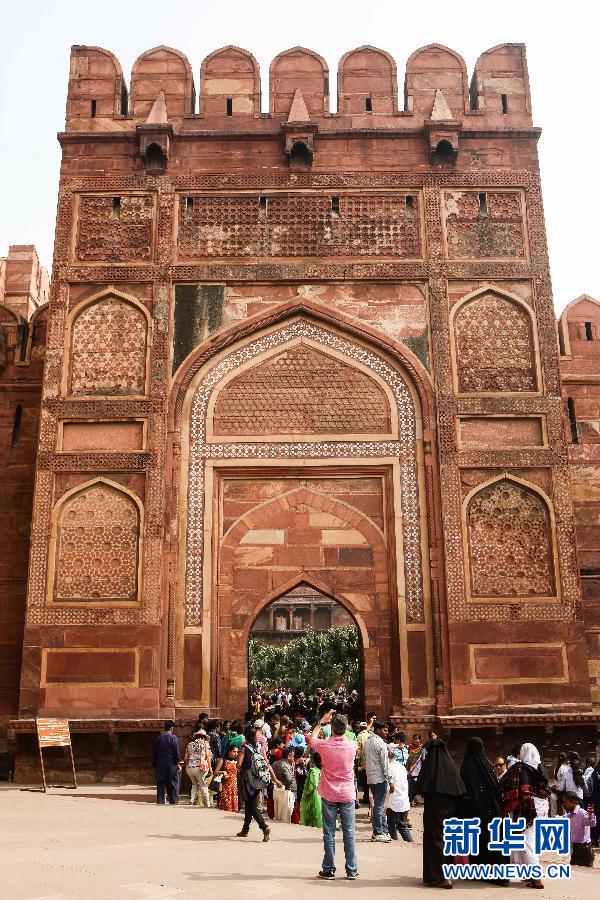 11月8日,游客在印度北方邦阿格拉市参观阿格拉古堡。新华社记者郑焕松摄