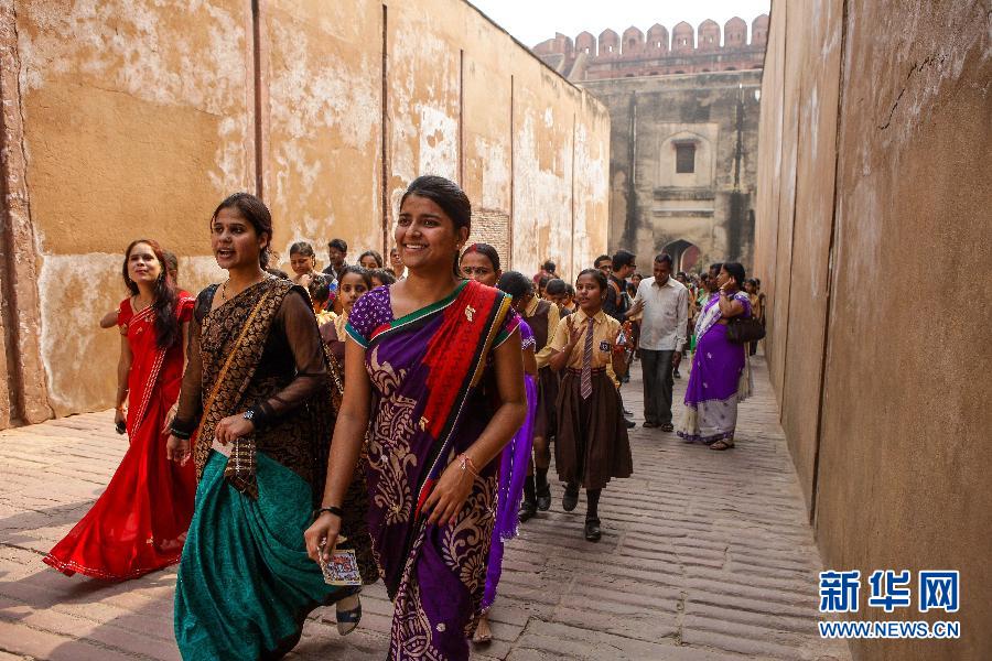 11月8日,游客在印度北方邦阿格拉市参观阿格拉古堡。新华社记者郑焕松摄