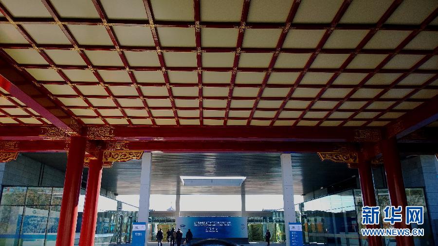 时隔13年,当中国再度成为APEC会议的东道主,世界在关注着北京。风光秀丽的雁栖湖,将见证亚太经济合作组织领导人非正式会议的务实成果。这是怀柔雁栖湖新闻中心(11月3日手机拍摄)。 新华社记者张岩摄