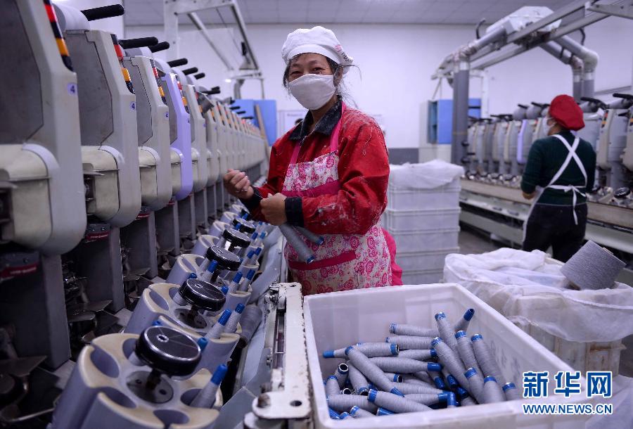 九江中浩纺织公司工人在生产车间内作业(11月7日摄)。该公司是纺织巨头华孚集团布局中部地区的一个重要生产基地,纺织品年产量1.5万吨,并依托长江黄金水道源源不断地销往世界各地。 2014年,在全面深化改革的冲锋号角中,处于长江流域承东启西关键节点的江西紧抓机遇,加强工业生产,扩大对外开放,更好分享长江经济带建设带来的红利,提升在区域发展格局中的地位。新华社记者 陈子夏摄