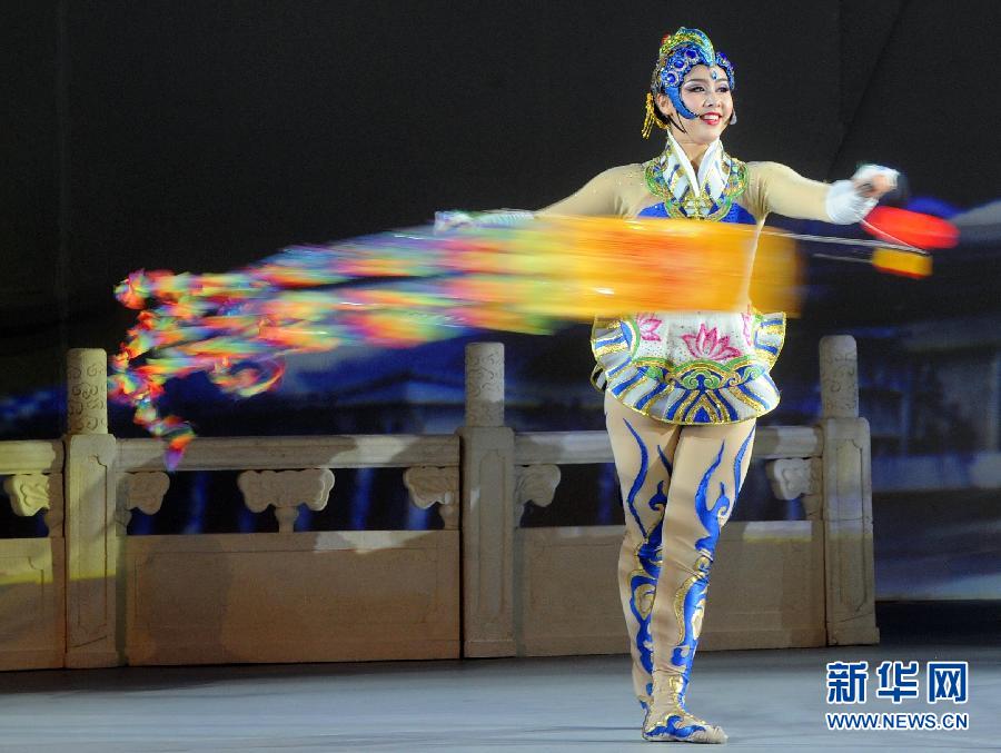 11月8日,演员在表演抖空竹。当日,北京市人民政府和2014年APEC工商领导人峰会组委会等共同举办“APEC工商之夜”,2014年APEC工商领导人峰会参会代表等1200余人出席。新华社记者 公磊 摄