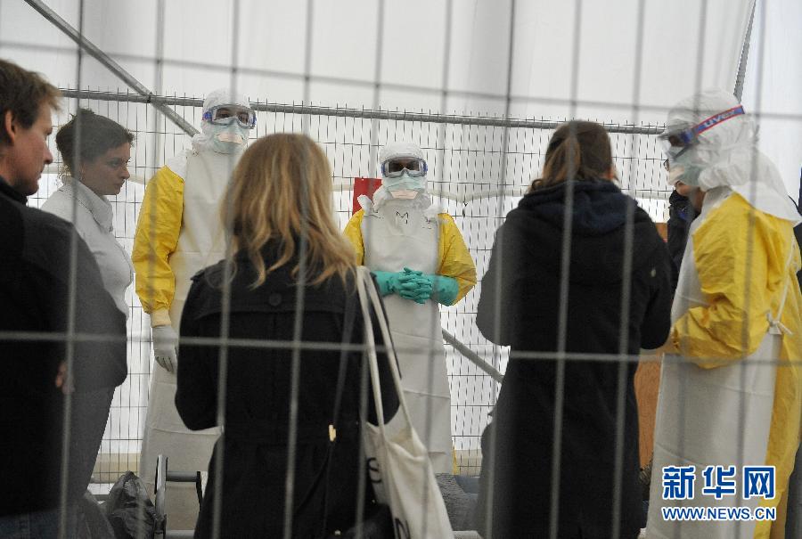 11月7日,在比利时首都布鲁塞尔一处“无国界医生”组织的培训基地,志愿者学习如何处置感染埃博拉的病人。当日,一些拥有行医经验但从未接触过埃博拉防治的志愿者在这里接受完全模拟西非疫区实际情况的医疗流程培训,他们将在未来数周内飞赴西非埃博拉疫区。新华社记者叶平凡摄