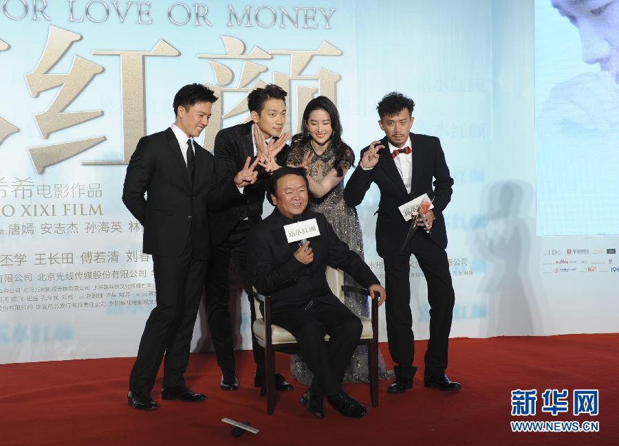 11月7日,电影《露水红颜》众主创在活动现场“卖萌”合影。当日,电影《露水红颜》在北京举行首映及见面会,影片导演高希希携主演Rain、刘亦菲、王学兵等亮相活动现场。 新华社记者赵丁喆摄