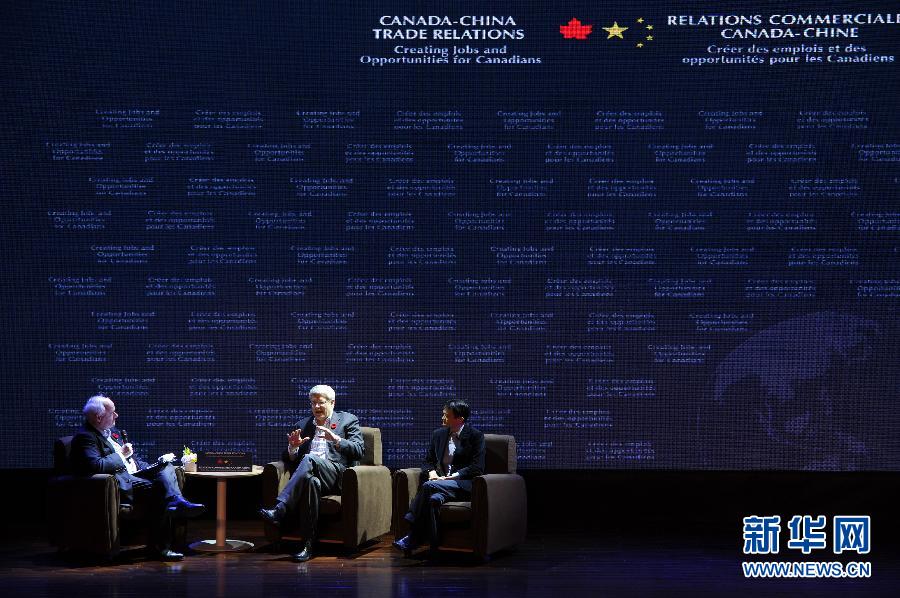 11月7日,加拿大总理斯蒂芬·哈珀(中)在阿里巴巴集团董事局主席马云(右)陪同下参加现场交流。当日,加拿大总理斯蒂芬·哈珀在杭州参观阿里巴巴集团。应中国国务院总理李克强邀请,加拿大总理斯蒂芬·哈珀于11月6日抵达杭州,开始对中国进行正式访问。新华社记者鞠焕宗摄