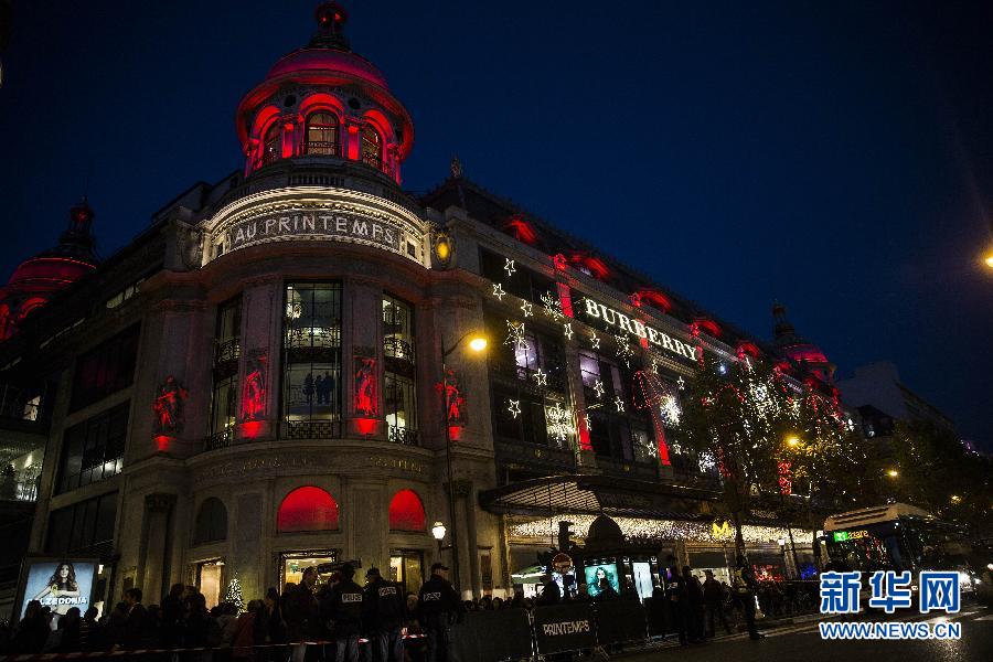 这是11月6日在法国巴黎拍摄的巴黎春天百货旗舰店的圣诞橱窗。进入11月后,法国首都巴黎的许多商家已着手为店铺更换“新装”,希望以华丽的灯饰、绚烂的色彩迎接这一重要节日的到来,节庆气氛已在花都巴黎酝酿。新华社发(埃蒂安·洛朗摄)