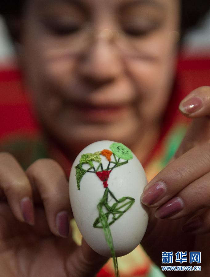 11月7日,一位民间艺术家在“品味北京”展区演示彩蛋制作。 2014年APEC领导人会议周期间,“品味北京”展在北京国家会议中心展出,展示面积共计1800平方米,包括文化传承珍品、传统老字号名品、科技创新精品三大板块。新华社记者罗晓光摄