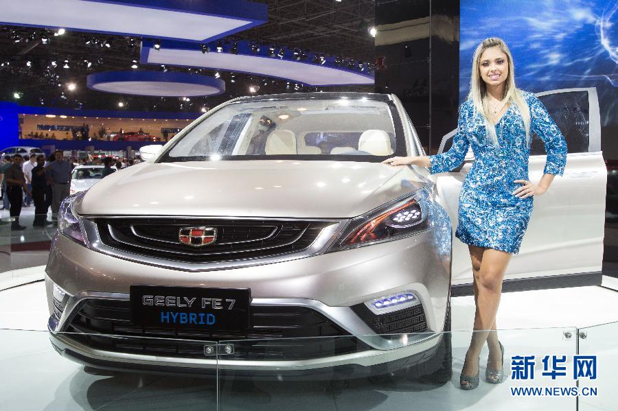 11月6日,在巴西圣保罗,模特展示一辆吉利“FE-7”混合动力车。正在举行的第28届圣保罗国际车展上,奇瑞、吉利、比亚迪、江淮和力帆等中国品牌的汽车亮相登场,中国自主设计的车型受到巴西观众的关注和欢迎。新华社记者 徐子鉴摄