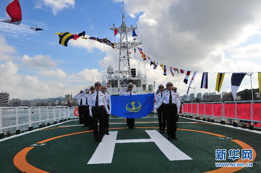 11月6日,“海巡1103”船的海事工作人员在举行仪式。当日,海南省三亚海事局“海巡1103”船列编仪式在三亚救助码头举行,标志着该船正式投入琼南地区海事执法工作,结束了三亚海事局不能对沿海远距离辖区进行全面监管的历史,使三亚海事局在海南南部海域的海上执法、海上事故调查取证的能力得到跃升。 “海巡1103”船主要用于执行三亚辖区50海里以内水域的海上巡逻、海事监管和应急处置任务。 新华社发