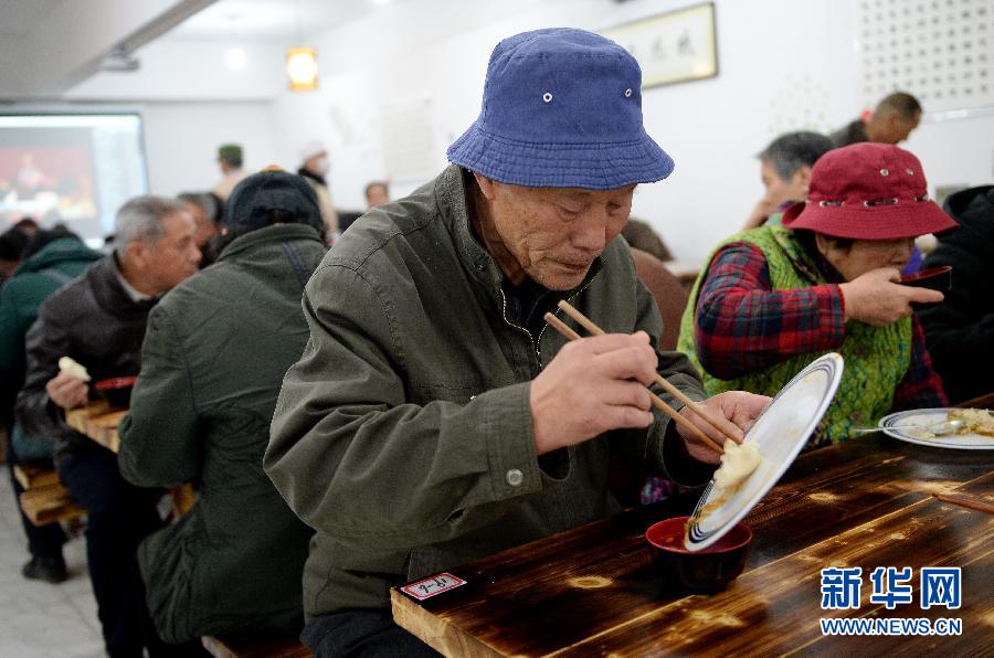 11月10日,市民在西安雨花斋餐厅就餐。餐厅提倡节约用餐,就餐者都会将饭菜吃干净。近日,陕西西安首家免费素食互助餐厅在洒金桥劳武巷开业,每天中午11点到12点向市民提供免费素食午餐。据工作人员介绍,这家名为“雨花斋”的免费素食互助餐厅在全国各地共有八十多家店面,餐厅资金来自爱心人士捐赠,大厨及服务人员是社会上的义工,旨在传递爱心,为需要的人提供帮助。新华社记者 刘潇 摄