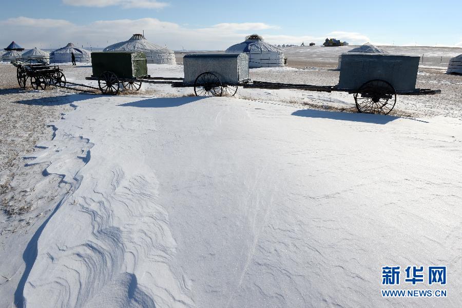 这是内蒙古呼伦贝尔鄂温克族自治旗伊敏苏木境内一处牧民居住点(11月6日摄)。初冬的内蒙古呼伦贝尔草原,蔚蓝的天空映衬着洁白大地,兴安林海苍山负雪、马群迎风欢歌舞动,人们在季节变换中欣赏到雄浑质朴的北国画卷。呼伦贝尔大草原位于祖国“雄鸡”版图冠顶,原始森林、典型草原、湿地河流湖泊交织密布,是北方重要生态安全屏障和辐射京津的绿色农畜产品生产基地。新华社记者 张领 摄
