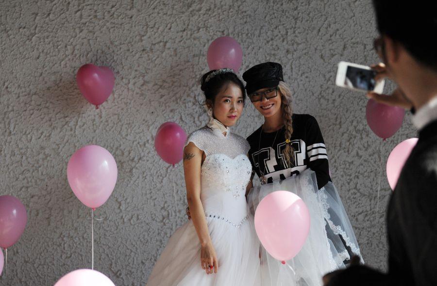 娇娇穿着婚纱,很多人来跟她合影,俨然是一个幸福的新娘。