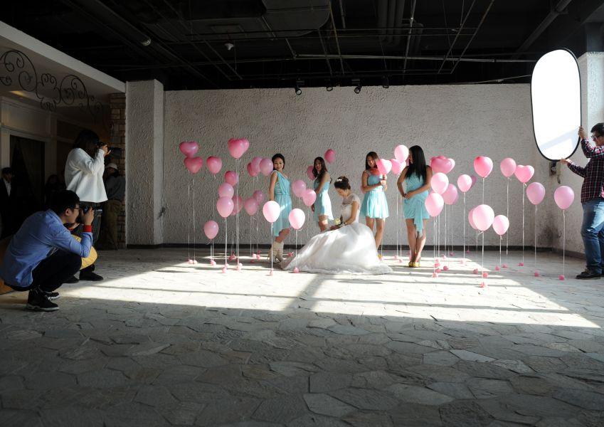 唯美的背景,众多伴娘陪伴着娇娇记录下这美丽的时刻。