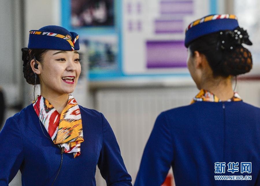 11月10日,乌鲁木齐客运段动车队的“动姐”在进行形体训练。当日,正在乌鲁木齐客运段紧张训练的“动姐”们首次向媒体露面。据乌鲁木齐铁路局介绍,乌鲁木齐客运段动车队成立于2014年7月1日,队员由汉、维吾尔、回、满和朝鲜等多民族组成,平均年龄23岁,致力于为旅客营造“甜蜜新丝路、瞬间新感受”的乘车体验,打造丝路上的“甜蜜高铁”。新华社记者 赵戈 摄 图片来源:新华网