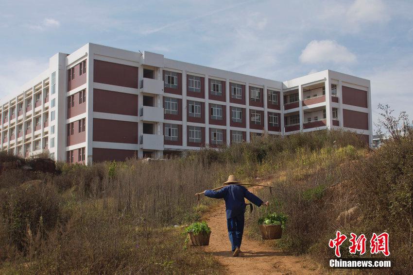 2014年11月10日,昆明,呈贡区郎缪小学2011年开工建设,按施工合同要求,这所学校当年就应该建成。郎缪小学是当年打造的昆明市100所标准化学校之一,近4年过去了,学校至今未完工,长时间停工后,两个月前还有人在学校里养起了鸡。 小鸡“侵占”学校,郎缪小学成了养鸡场。