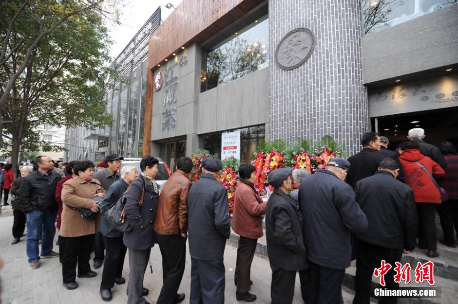 11月12日,兰州一牛肉面馆开业推出一碗牛肉面一元钱优惠引市民扎堆品尝。 杨艳敏 摄