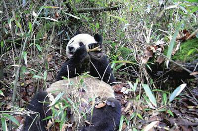 原标题:大熊猫换口味林间大啃羚牛骨(图)