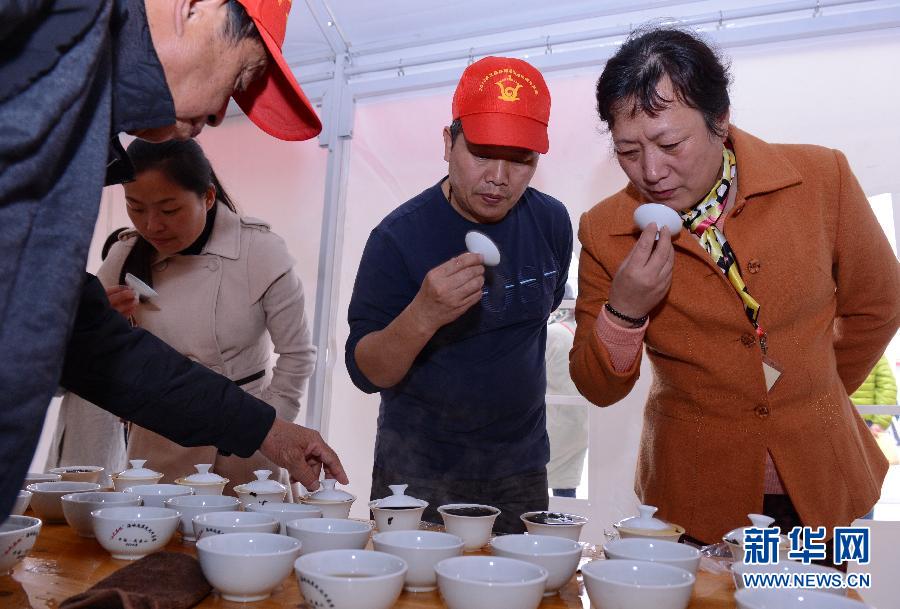 11月16日,茶人在斗茶活动上品茗。当日,第八届海峡两岸茶业博览会在福建武夷山开幕。海峡两岸上千名茶人和游客聚集武夷山,举行“海峡两岸民间斗茶”活动。 新华社记者 张国俊摄