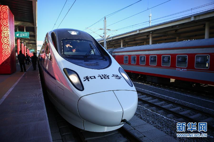 11月16日,从乌鲁木齐南站首发的D8602次列车等待发车。当日11时整,随着兰新高铁乌鲁木齐至哈密段正式开通运行,新疆由此正式迈入高铁时代。兰新高速铁路全长1776公里,是目前世界上一次性建设里程最长的高速铁路。此次先期开通运营的乌鲁木齐至哈密段全长530公里,动车运行时速达200公里,乌鲁木齐到哈密的时间由原来的5小时缩短至3小时左右。铁路部门表示,哈密至兰州段预计将于2014年年底开通。新华社记者 吴壮 摄