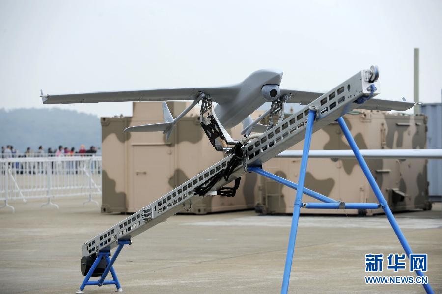 这是海巡者(灵龙)船载/车载无人机。据介绍,它是一款先进小型中低空近程无人机系统,最大特点就是可采用船载/车载起飞、垂绳拦阻回收(11月12日摄)。在第十届中国国际航空航天博览会上,数十款国产无人机成为航展上备受关注的焦点。WJ-600无人机、“翼龙”无人机系统、彩虹4无人机系统等明星机型纷纷亮相。此外,多款民用无人机同台竞技,民营企业大举进军无人机市场也成为今年航展的新亮点。新华社记者 梁旭 摄