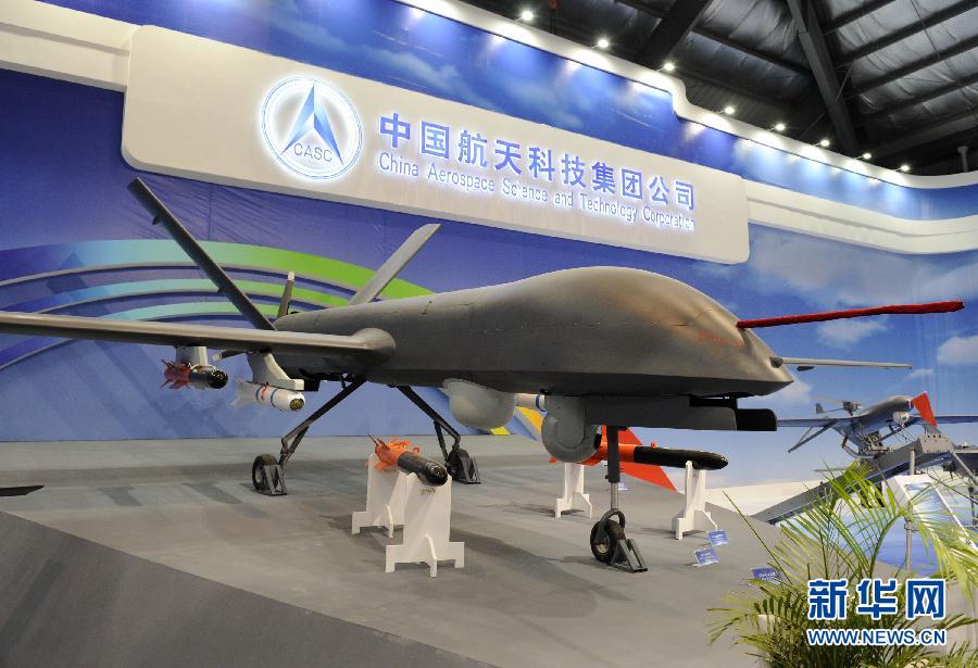 这是彩虹四号(CH-4)中空长航时无人机系统,该无人机续航时间长达40小时(11月12日摄)。在第十届中国国际航空航天博览会上,数十款国产无人机成为航展上备受关注的焦点。WJ-600无人机、“翼龙”无人机系统、彩虹4无人机系统等明星机型纷纷亮相。此外,多款民用无人机同台竞技,民营企业大举进军无人机市场也成为今年航展的新亮点。新华社记者 梁旭 摄
