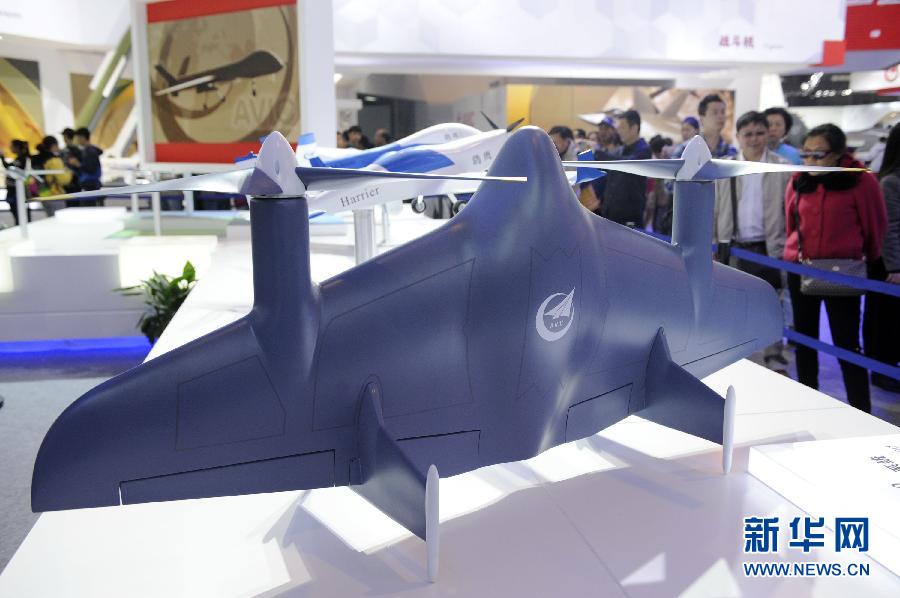 这是VD200垂直起降无人机系统,由中航工业成都飞机设计研究所研制,被誉为“空中自由人”(11月14日摄)。它既可以像直升机一样垂直起降,也可以按照固定翼方式进行高速水平飞行。在第十届中国国际航空航天博览会上,数十款国产无人机成为航展上备受关注的焦点。WJ-600无人机、“翼龙”无人机系统、彩虹4无人机系统等明星机型纷纷亮相。此外,多款民用无人机同台竞技,民营企业大举进军无人机市场也成为今年航展的新亮点。新华社记者 梁旭 摄