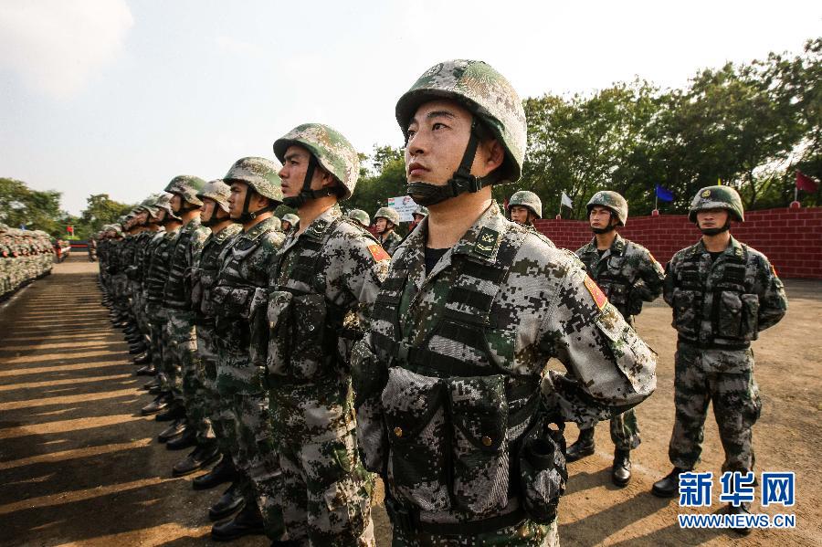 当日,“携手—2014”中印陆军反恐联合训练开训仪式在印度马哈拉斯特拉邦浦那市奥恩德军营举行。在随后的10天里,双方将采取体验教学、示范观摩、混编同训等方式,组织基础体能、战术手语、入室清剿和简易爆炸物搜索与排除等课目训练,按照战场监视、立体封控、营救人质、联合歼击、追捕搜剿的步骤实施城镇反恐联合实兵演练。新华社记者郑焕松摄