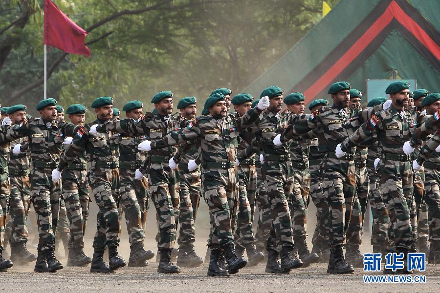 当日,“携手—2014”中印陆军反恐联合训练开训仪式在印度马哈拉斯特拉邦浦那市奥恩德军营举行。在随后的10天里,双方将采取体验教学、示范观摩、混编同训等方式,组织基础体能、战术手语、入室清剿和简易爆炸物搜索与排除等课目训练,按照战场监视、立体封控、营救人质、联合歼击、追捕搜剿的步骤实施城镇反恐联合实兵演练。新华社记者郑焕松摄