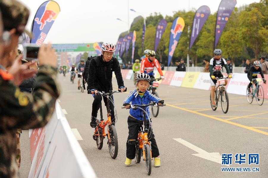 11月16日,一名小选手在比赛中骑行。当日,“2014年七彩云南格兰芬多国际自行车节”在云南省昆明市鸣枪开赛。除了300余名参加全部五个赛段的选手外,还有700余名当地自行车爱好者也参与了昆明站的比赛。新华社记者孙瑞博摄