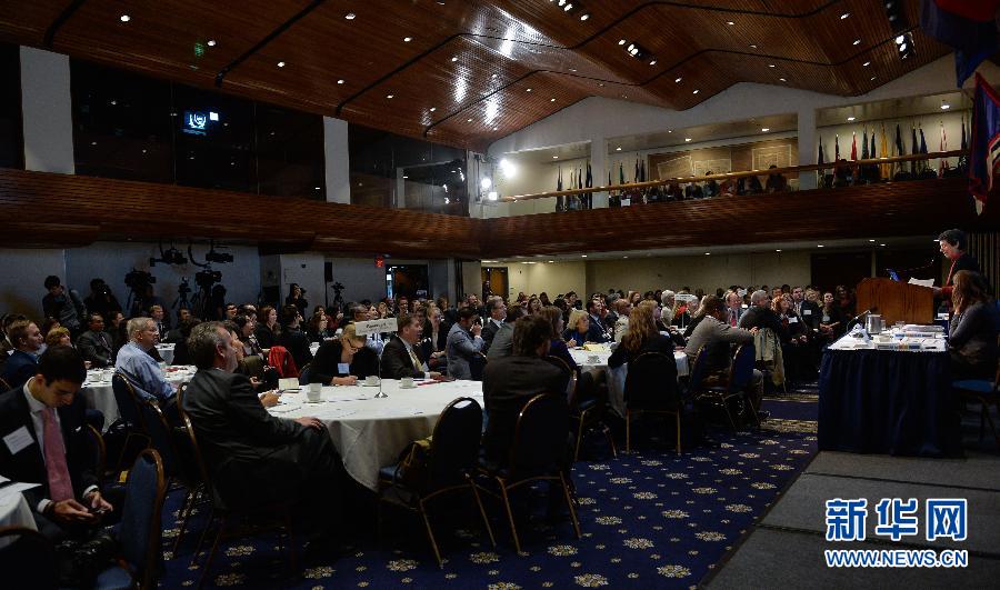 11月17日,在美国首都华盛顿,美国国际教育学会总裁高级顾问佩姬·卢门撒尔在2014年度《门户开放报告》发布会上讲话。美国国际教育学会17日发布2014年度《门户开放报告》,总结美国国际教育交流情况。报告显示,2013-2014学年中国大陆在美大学留学生比上一学年增长16.5%,达到27.4万人,是在美国际学生的头号来源地。新华社记者鲍丹丹摄