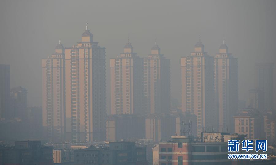 11月18日,沈阳市浑南地区上空笼罩着雾霾。 11月18日,沈阳市空气质量指数接近重度污染,这已是沈阳连续第二天遭遇比较重的雾霾天气。 新华社记者 姚剑锋 摄
