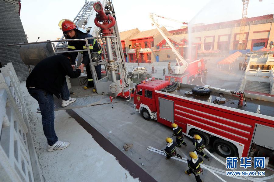 11月17日,河北大城县公安消防大队在红木文化产业新城内进行消防救援演练。为进一步加强广大群众消防安全意识,预防火灾事故的发生,河北大城县公安消防大队近日在红木文化产业新城组织开展灭火救援实战演练活动,并开展消防大检查,进一步筑牢红木古典家具产业基地的消防安全“防火墙”。新华社记者李晓果摄