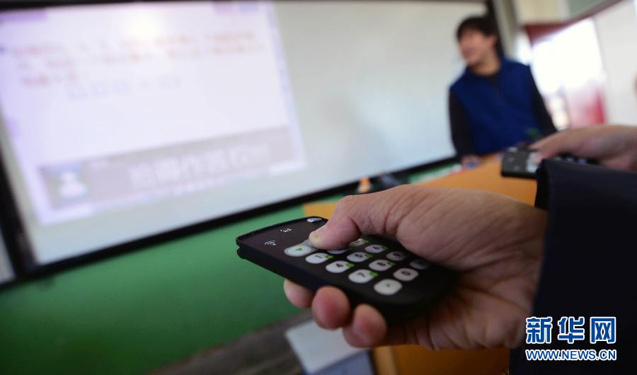11月17日,在济南燕柳小学五年级三班的数学课上,同学使用抢答器答题。为了真正提高课堂教学效率,燕柳小学在二至六年级每个班配置了课堂“抢答器”系统,系统分抢答与必答两种模式,老师出的选择题、判断题,学生们通过手中的抢答器就能直接回答并显示在屏幕中,方便老师即时了解每名学生掌握课堂知识的情况,课堂效率大大提高。新华社发(赵晓明 摄)