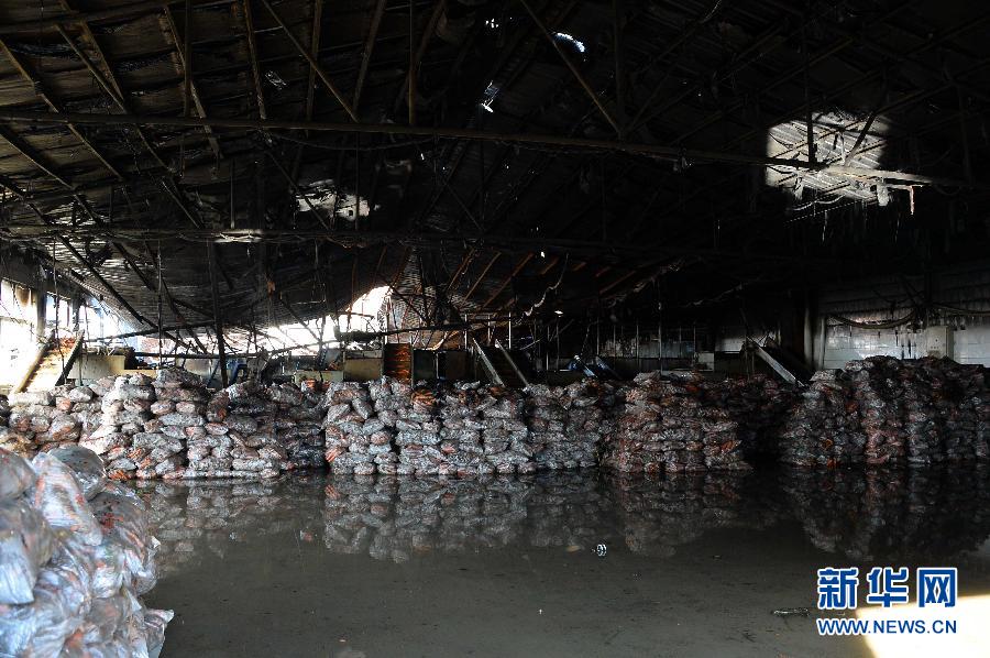 这是山东寿光火灾事故现场(11月17日摄)。 11月17日,山东寿光火灾事故现场扑救结束。11月16日晚7时,山东寿光龙源食品有限公司一胡萝卜包装车间发生火灾,事故已致18人死亡,13人受伤。新华社记者 范长国 摄