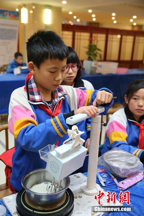 11月16日,400多名来自北京市海淀区31所中小学校的孩子们近日参加了海淀区青少年科技创新大赛。大赛旨在推动青少年科技活动的蓬勃开展,培养青少年的创新精神和实践能力,提高青少年的科技素质。图为学生们参加发明创造类项目(技术与设计类和工程类)评审。 李瑞林 摄
